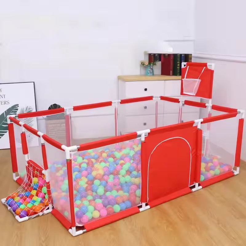 The breathable mesh walls allow full visibility so parents can monitor their child from any angle. The soft, cushioned floor base protects little knees during playtime, while the zippered door gives your child freedom to crawl in and out. The included colorful ball pit brings sensory development to life—boosting hand-eye coordination, motor skills, and imaginative play.