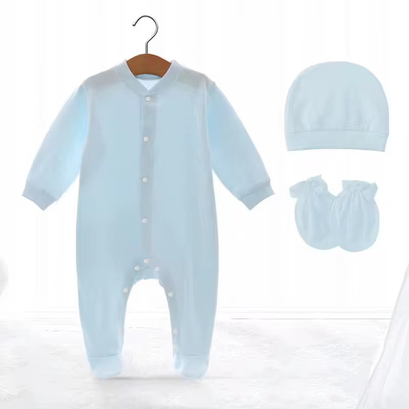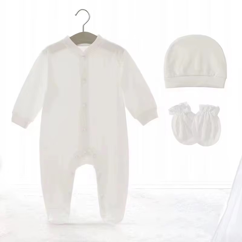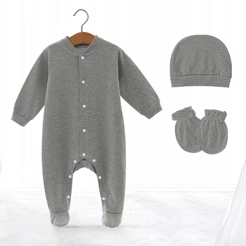 Wrap your newborn in pure comfort with this Premium Baby Romper Set, crafted from soft breathable cotton that’s gentle on delicate baby skin. This premium set includes a full-length onesie, matching cap, and cozy mittens—everything your baby needs for warmth, safety, and uninterrupted sleep.